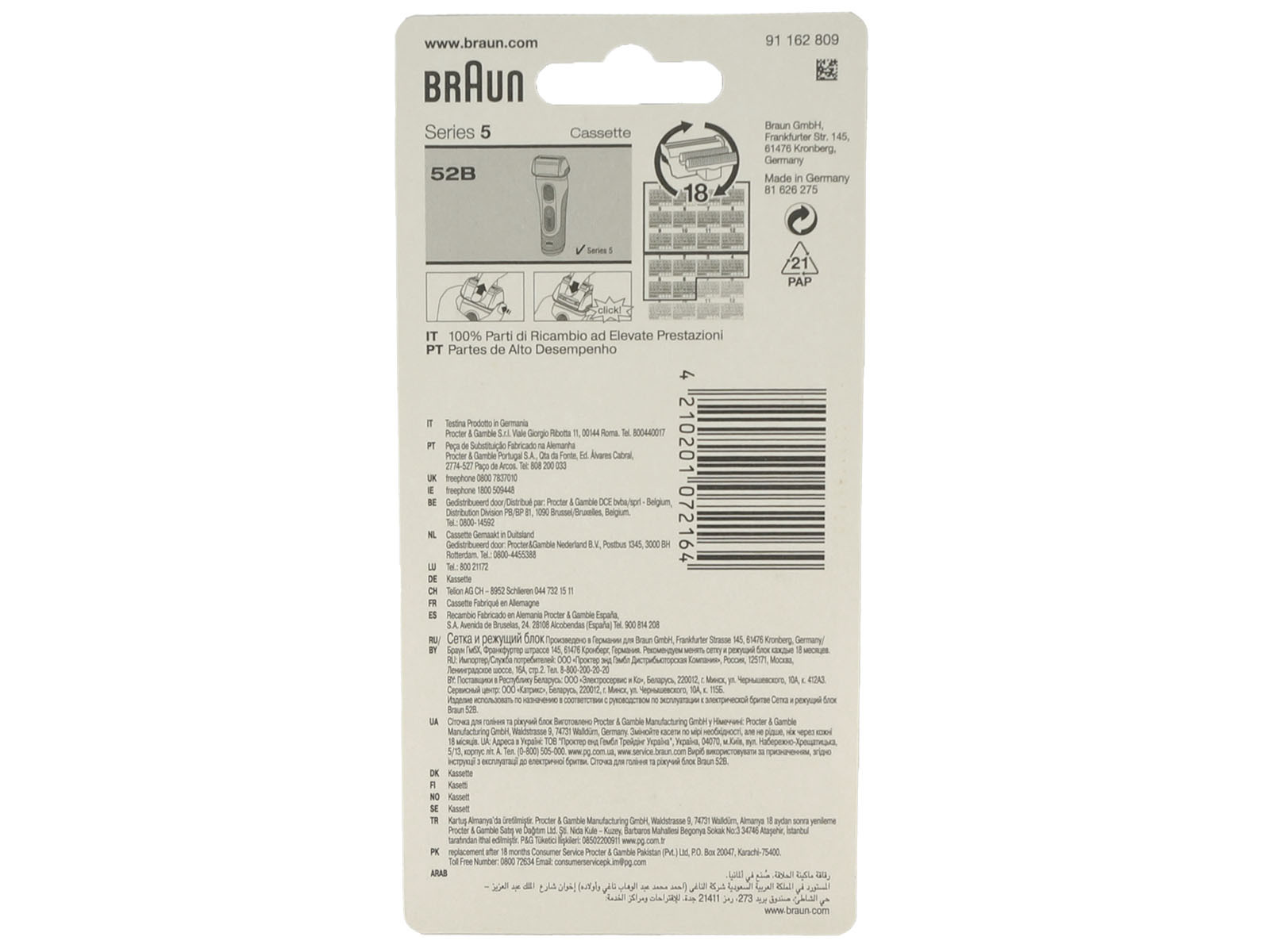 Бритвенная кассета 52B, для электробритвы Braun 5 серии, черная.